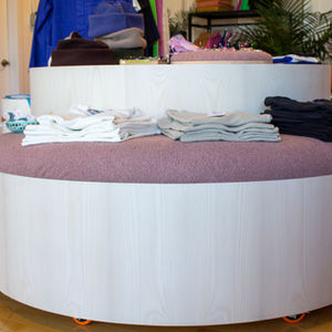 Triple Crane Studios is proud to partner with Shop Violets, our collaboration involved crafting custom furniture, including a diverse series of displays for the shop. Ranging in size, the displays served various purposes, with the largest one standing as the shop's focal point. This centerpiece not only showcased products but also incorporated seating and storage options, offering a functional yet aesthetic addition to the store's ambiance.
